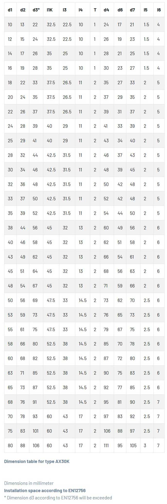 • قطر شفت: d1 = 10 … ۸۰ mm (0.39″ … 3.15″)