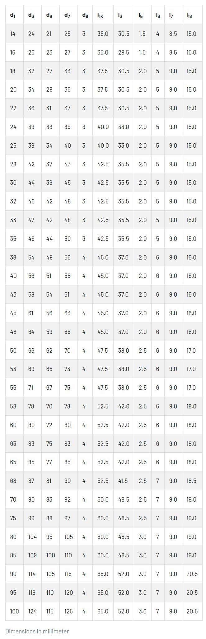 - استفاده در شفت های با قطر ۱۴ تا ۱۰۰ میلیمتر